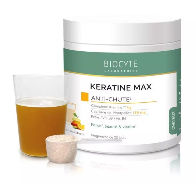 Navdih za Keratin Max je vrhunski proizvajalec Biocyte dobil pri naravni sestavi las. Ta edinstvena in visoko koncentrirana formula je obogatena s kompleksom K-AMINE, ki je vir 18 aminokislin keratina, in z ekstraktoma preslice in venerinih laskov. Lasem povrne vitalnost, moč, volumen in zdrav lesk.
